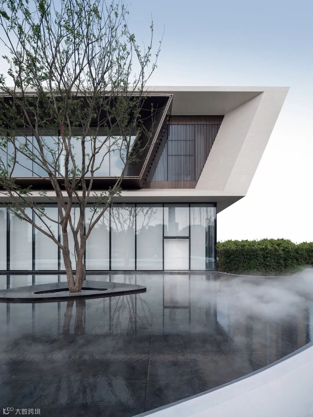 杭州大华春山隐树院,极简的建筑线条,大面积的通透玻璃,配合“油画框”式的设计元素,完全是现代主义美学。