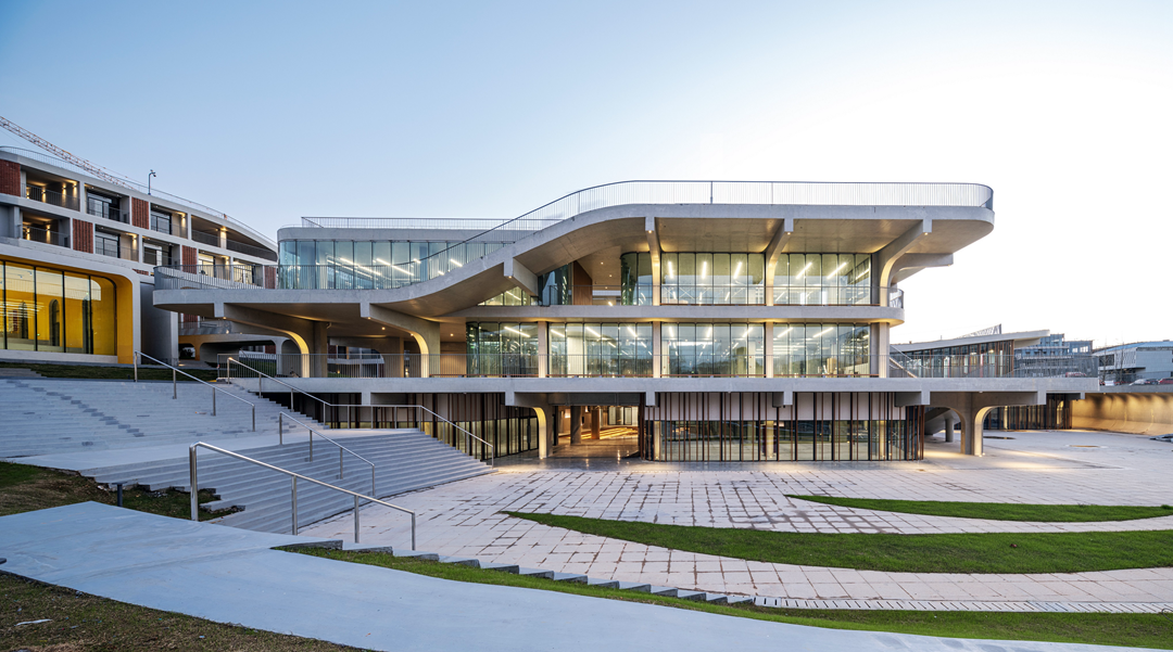电子科大长三角研究院选址于衢州高铁新城,校园的一期工程建筑面积约为13万㎡。其中,生活中心约2万㎡,是承载全校师生的住宿、社交、运动、餐饮、购物、学习和娱乐等多种功能的校园综合体。