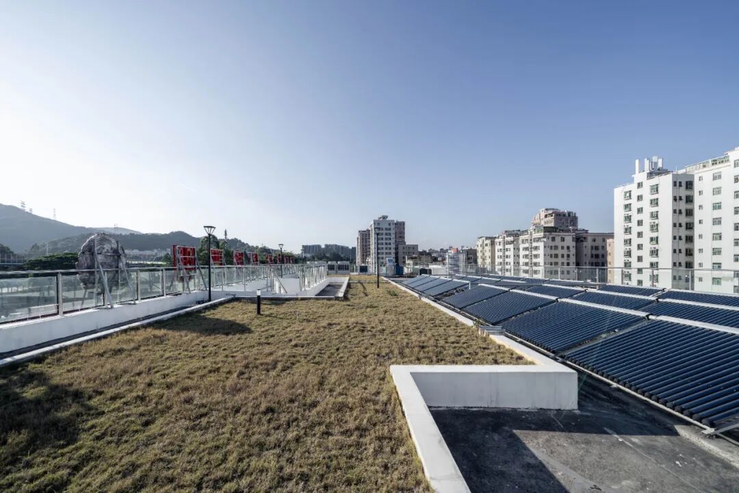 此外,在楼栋南向多处设置空中花园,方便远眺南向的阳台山森林公园,也丰富了消防员的生活。本项目采用绿色建筑和海绵城市技术,通过设计屋顶果园、下凹式绿地等措施吸纳、蓄渗雨水,并有效控制场地内雨水径流。