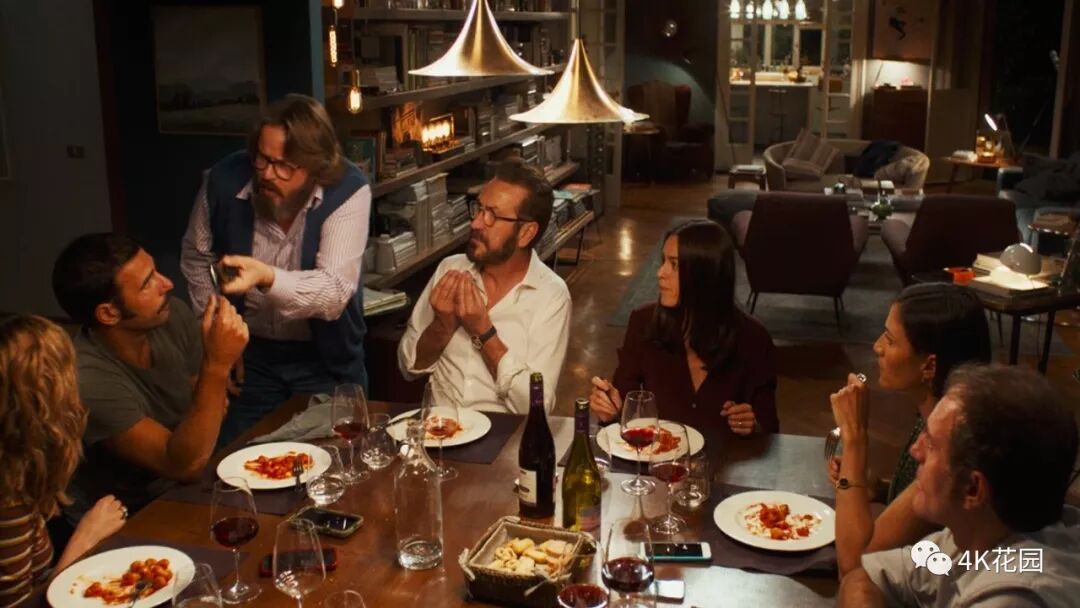 一张餐桌,七位好友,其中三对夫妻,一位单独赴约的男人,大家一边吃饭一边聊天,说说笑笑。忽然有人提出玩一个游戏——所有人把手机都放在桌子上,开始公开手机里的每一条信息,包括收到的电子邮件和电话,由此他们之间的关系开始发生波动。