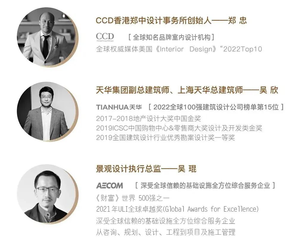 项目诚邀上海TIANHUA天华建筑设计、深受全球信赖的基础设施全方位综合服务企业AECOM、全球酒店室内设计CCD香港郑中设计事务所共同联合打造,从建筑、景观、室内等方面多维度诠释产品设计,传承莞邑人文精粹,以人文地标新著,共融城市新生。
