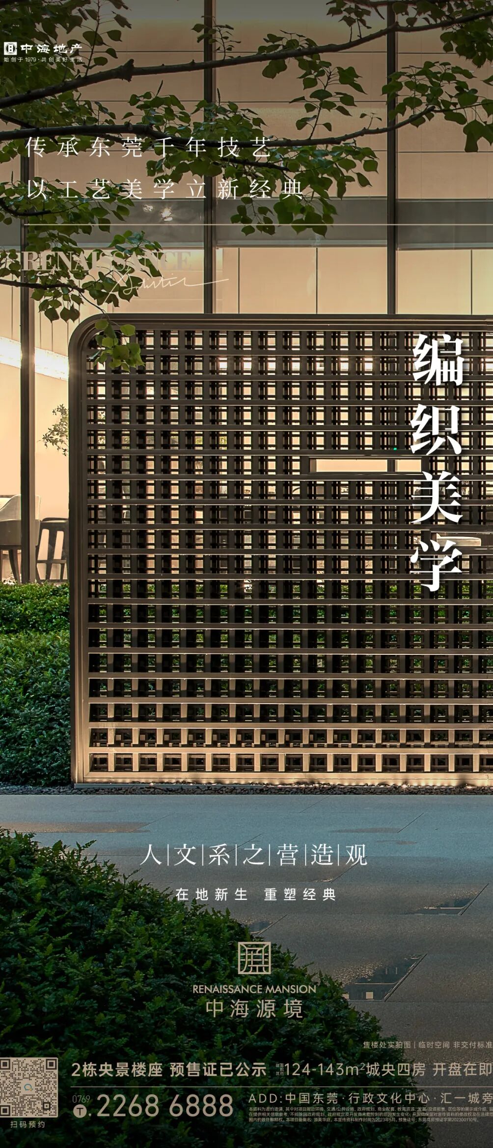 融合一系列东莞在地文化的中海·源境,正在编织一场未来美好生活范式。从选址到规划,从“莞邑新生,编织未来”故事线的设计再到人文美学产品的诠释,每一步无不彰显着中海对于精工人文产品精湛的锻造实力,用建筑还原关于家的记忆。细节之处见真章,这正是中海精益求精的坚持。