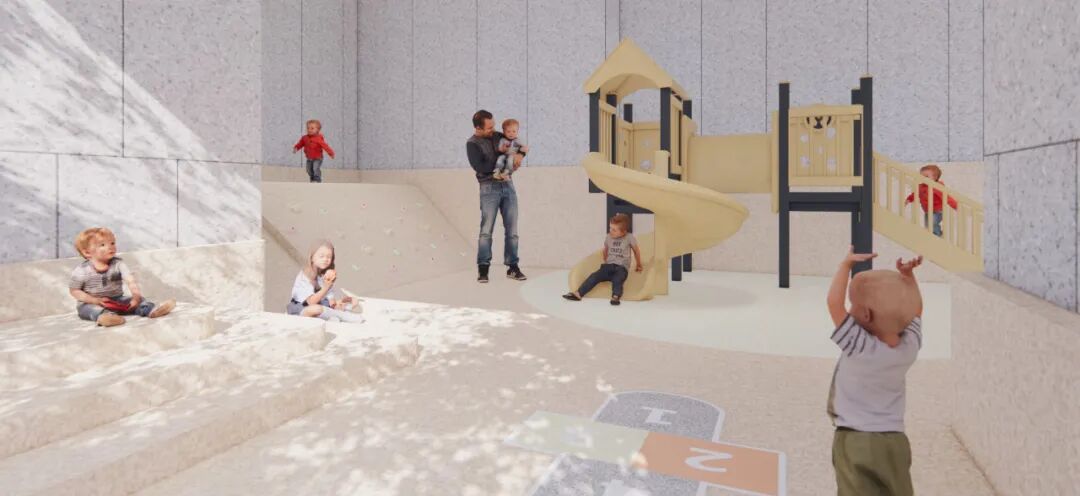 项目做了架空层,创立了一种有趣的空间连接方式,让孩子的趣味生活不再被天气与空间所限制。