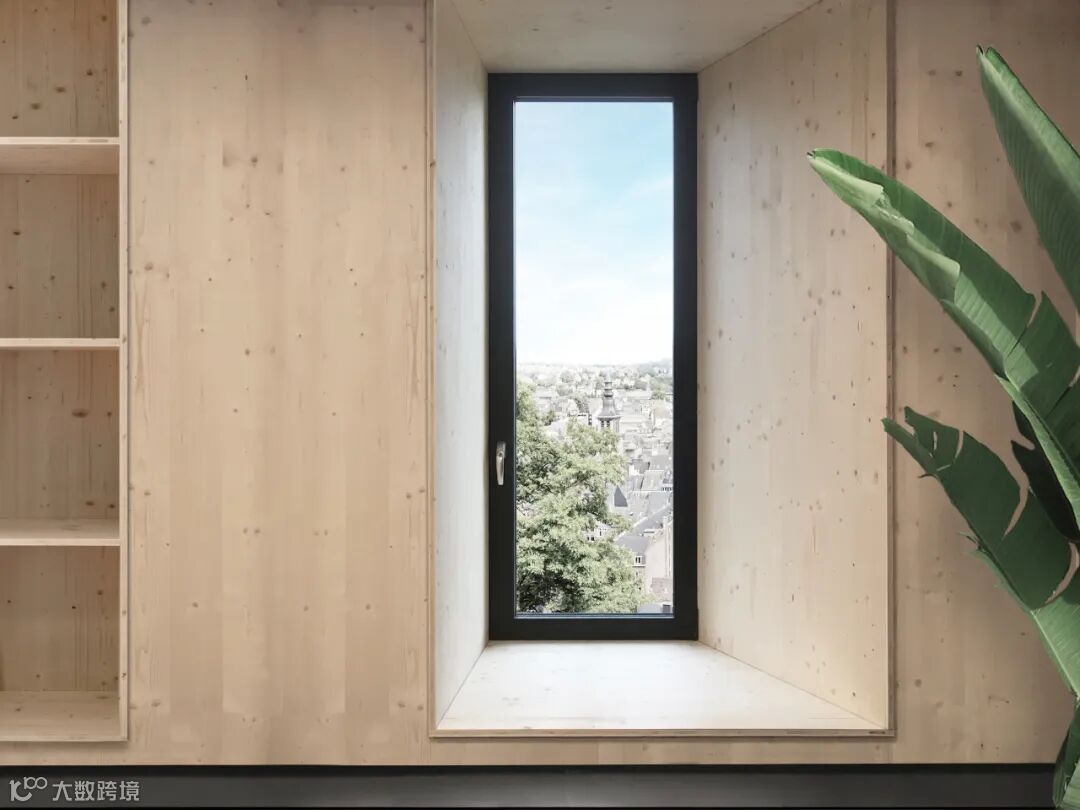 Following a digital scan of the entire facade, dozens of prefabricated wood panels were fixed to the existing balconies, revealing the whole volume in just a few days.
