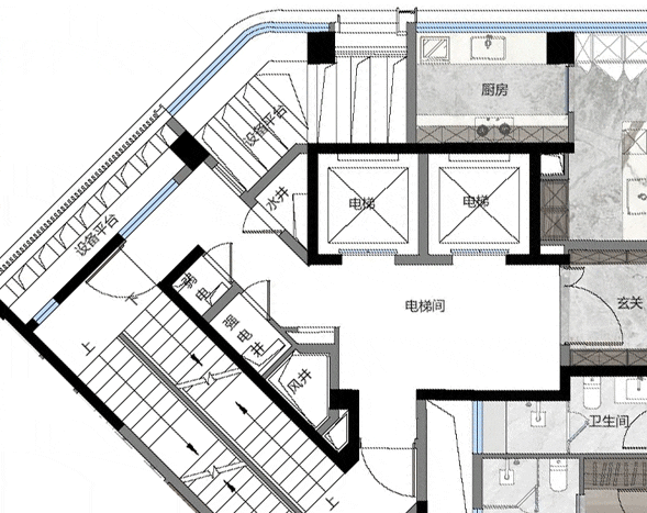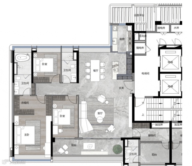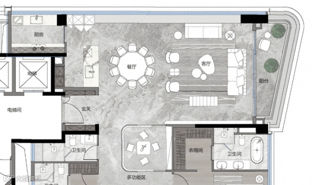 再来看另一个大平层户型,又是不同的设计方式: