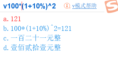 ①切换到搜狗输入法,打出“V”,直接在后面输入要计算的数字公式。