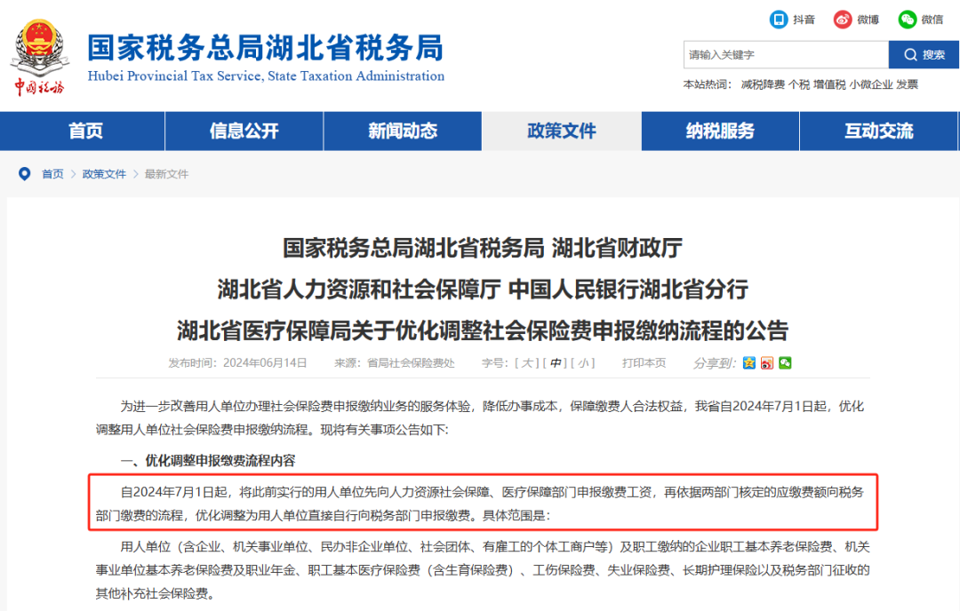 相关公告均明确,将此前实行的用人单位和个人先向社会保险经办机构申报缴费工资,再按照核定的应缴费额向税务部门缴费的流程,优化调整为缴费人直接自行向税务部门申报缴费。
