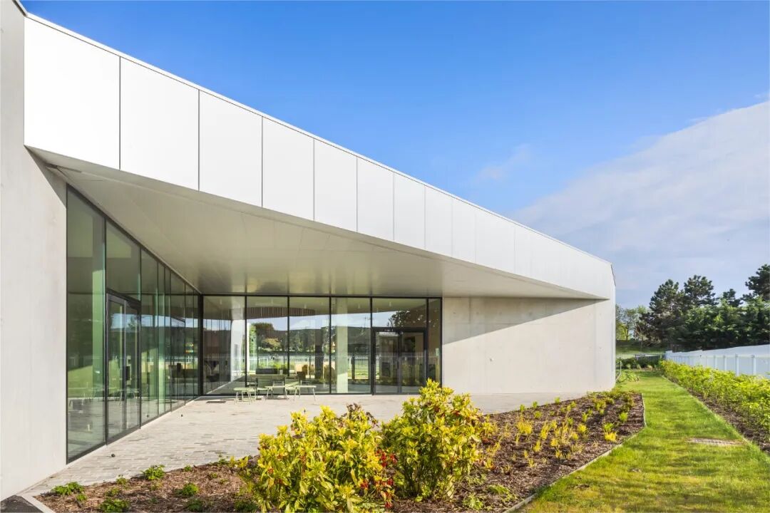 The building is slightly raised from the ground with a cross volume that exploits the four orientations of the plot. The plan offers beautiful open spaces welcoming gardens, a playground, a terrace, and a forecourt. The unobstructed views of the park make it possible to bring nature into the heart of the project so that it participates in the sensory awakening of children.