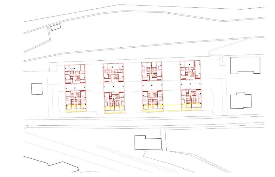 The core of the design is an enfilade of sottoportegos – public passageways on the ground floor – which forms the backbone of the four volumes and connect the access. The staircases are now located in the belly of the building and stiffen the structure, which is defined by the efficient use of materials.