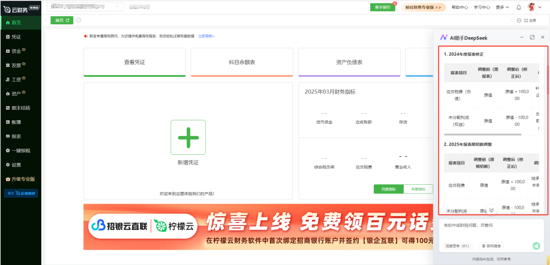 1️⃣ 打开柠檬云财务软件,召唤AI助手 deepseek