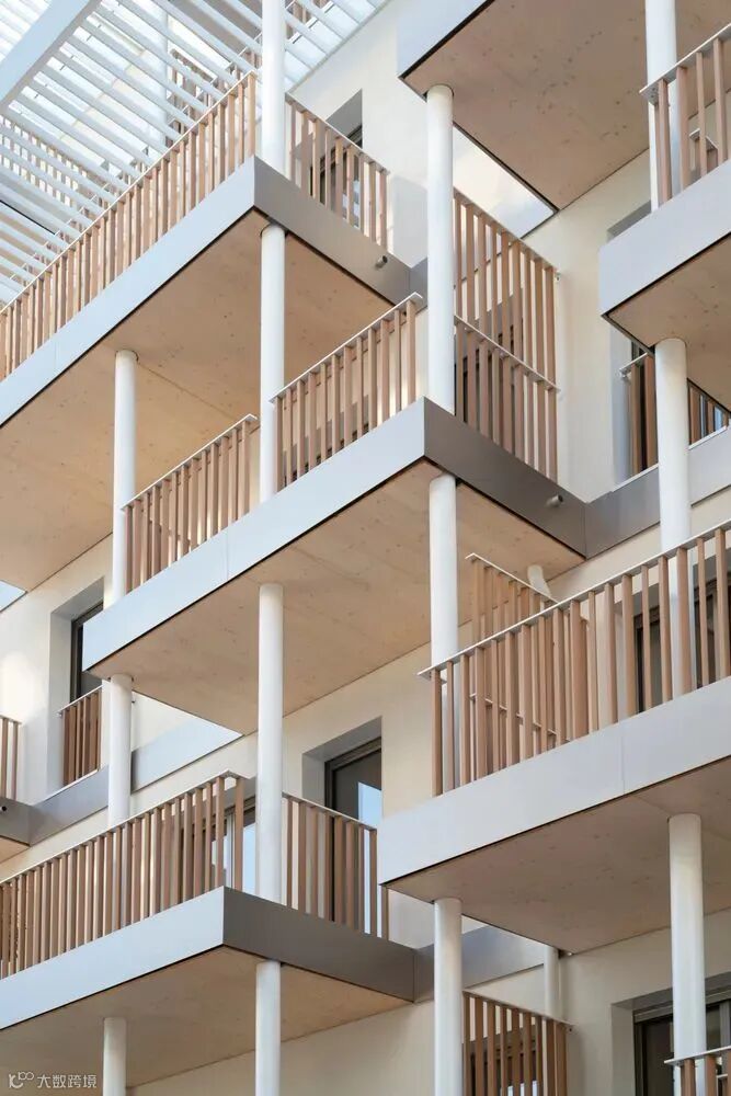 该住宅建筑由 CLT(交叉层压木材)制成,用于地板、立面和墙壁,并将生物气候设计、控制能源使用、碳储存与超过2000m³的实木结构相结合。
