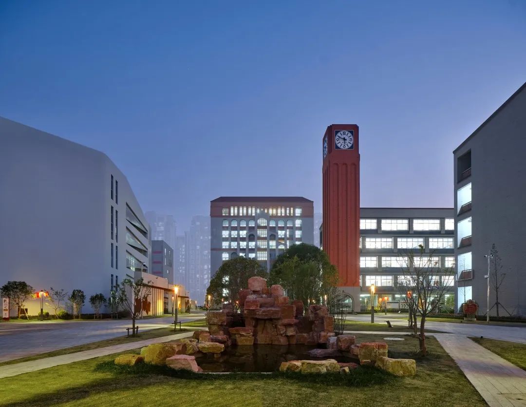 工整的教学院落与活跃的公共建筑形成富有趣味的造型对比与空间融合:清幽风雅于书香院落间弥漫,锐意创新在秀石雅韵中迸发,相互映衬。