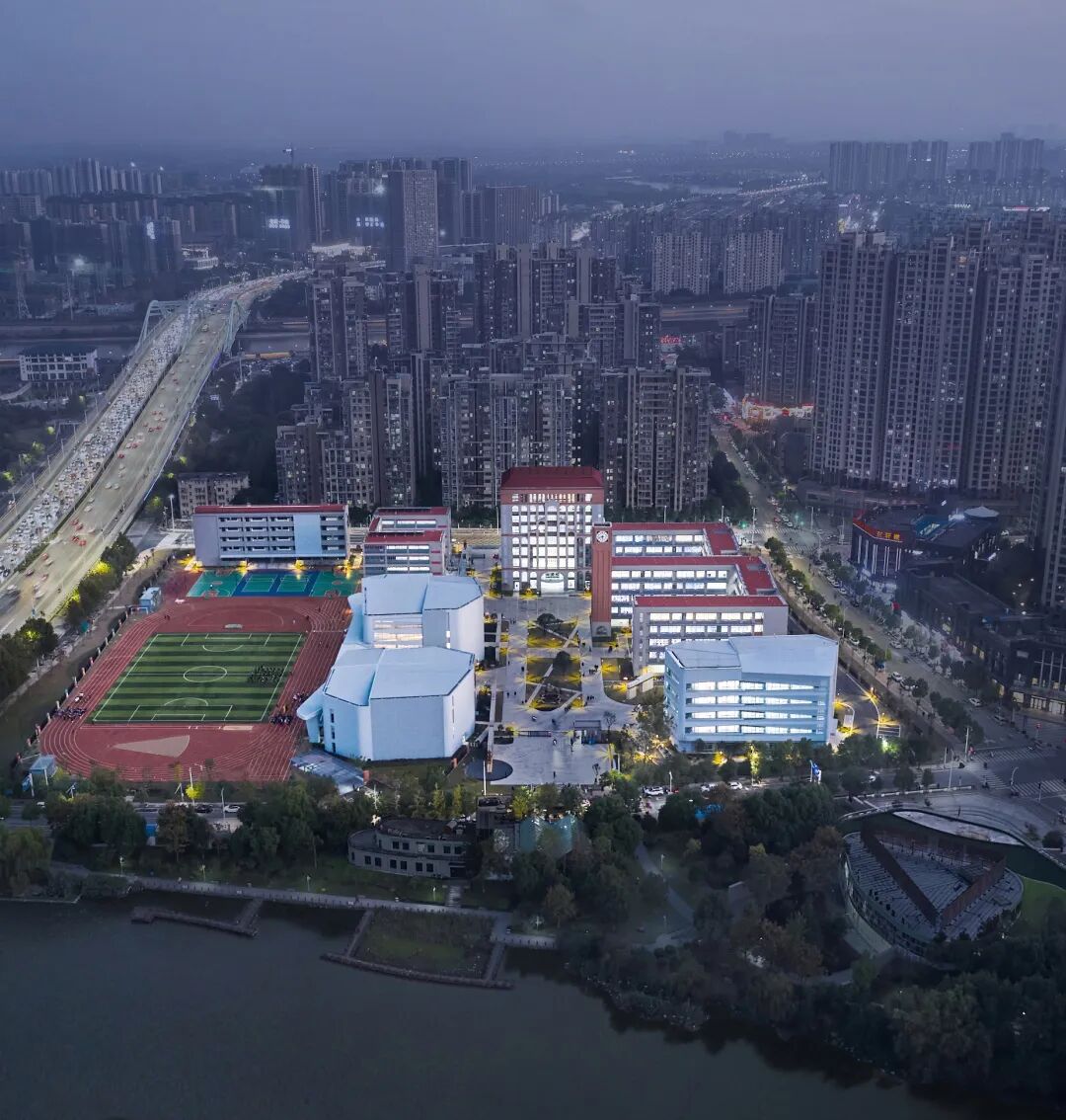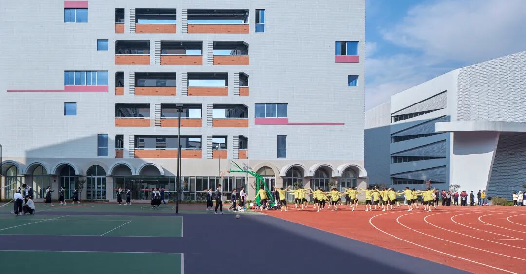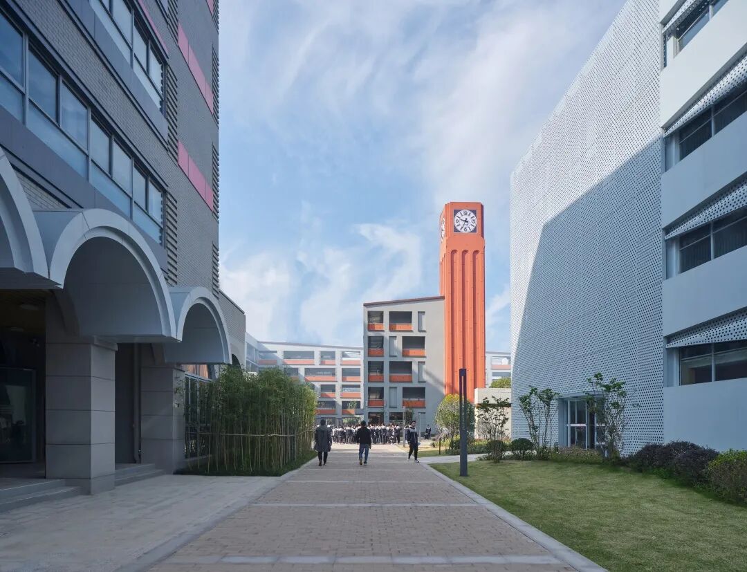 教学楼采用纵深多进的院落形式,错落有致,形成浓郁人文气息的现代化校园。