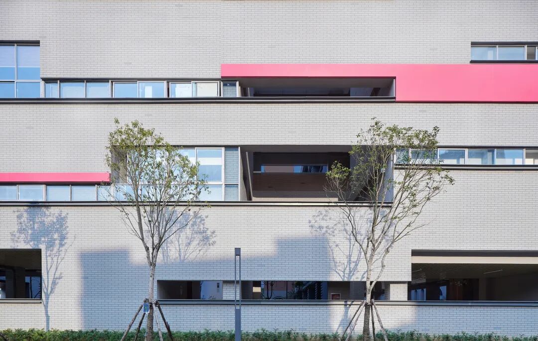 书院建筑群组,布局严谨,红褐色与灰色调相结合的民国风韵。璞石建筑以简洁的灰色涂料与灰白色穿孔板结合,自由灵动,营造人文荟萃的儒雅氛围。