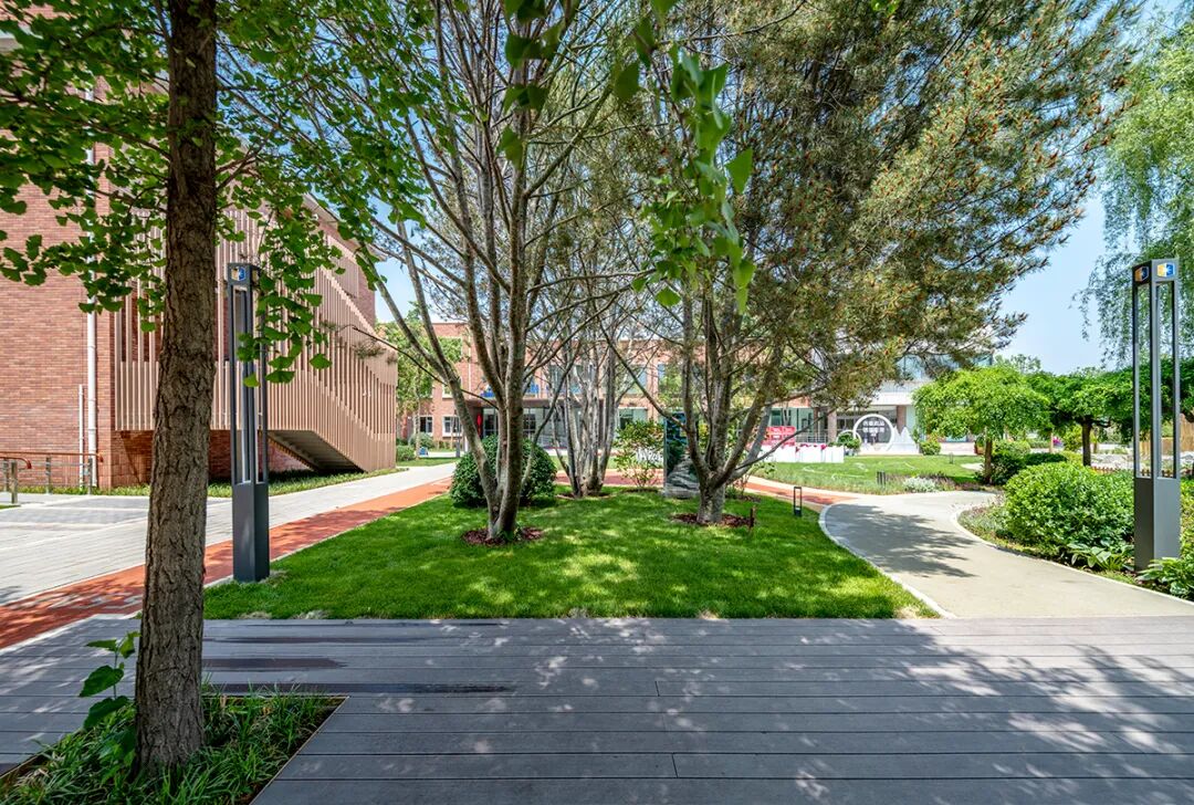 我们将原本不同风格的建筑变身为一栋栋花园里的“红房子”,带着些许70年代红砖楼的岁月痕迹,结合白色金属窗套、花格空调机位、木色格栅,尝试营造一种非传统意义上的在地场景。