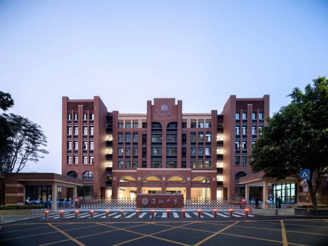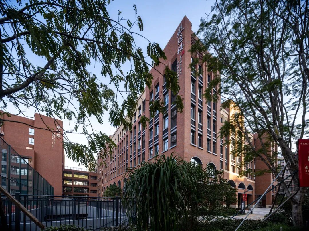 The architectural style of the new campus of Shenzhen Middle School's junior high school and senior high school is in a continuous line. The facade continues the classic three-section composition, incorporating modern design techniques into the iconic emblem of Shenzhen Middle School, creating a highly distinctive architectural image.