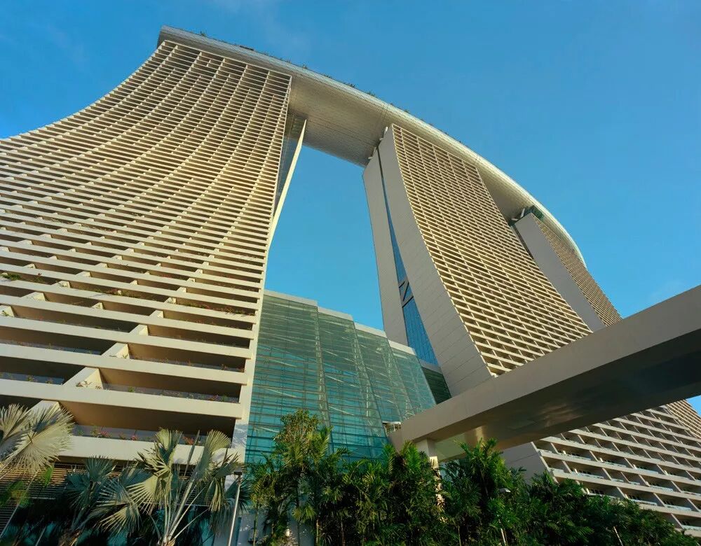 滨海湾金沙酒店建筑群体现了一种激发未来设计灵感的建筑理念。三座大楼建筑由Moshe Sadie设计,其灵感源自“纸牌。