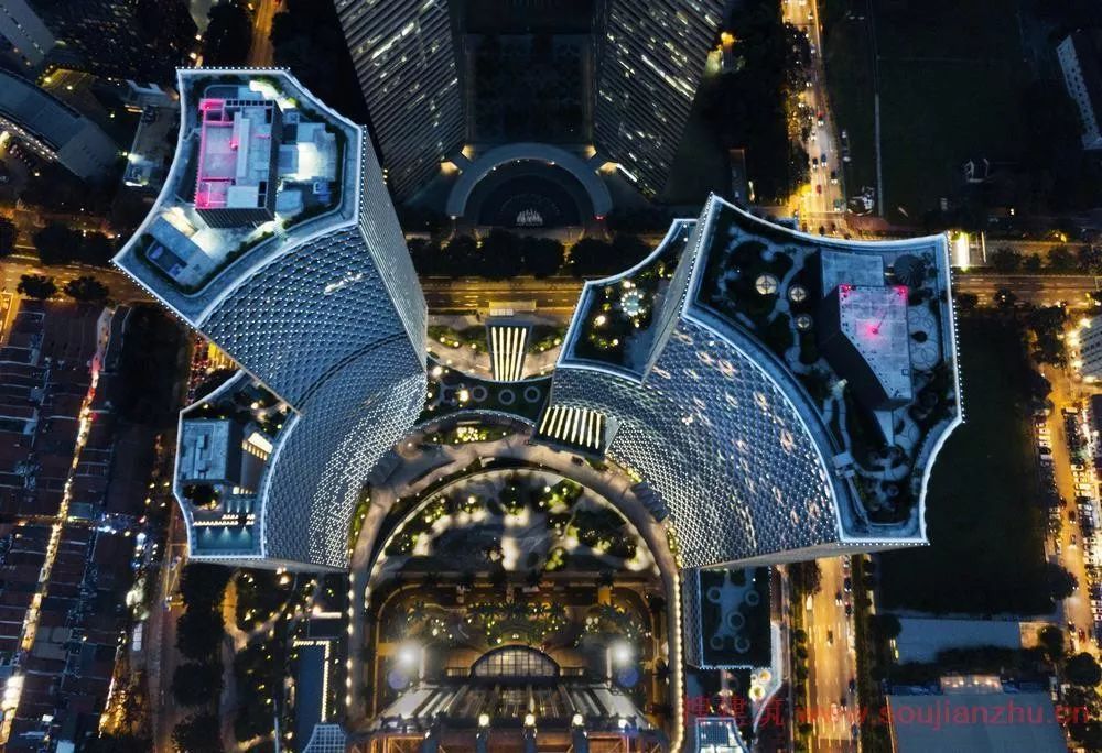 整个酒店建筑群包含了购物中心、酒店、会展、博物馆以及顶楼的空中花园,总建筑面积高达 154,938 平方米,如此复杂和高难度工程,在建筑界实属罕见。