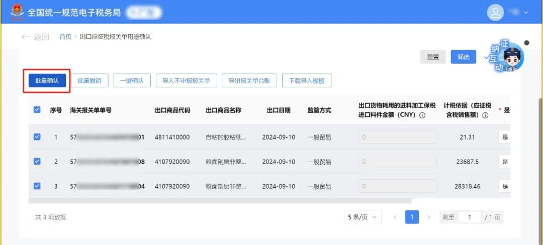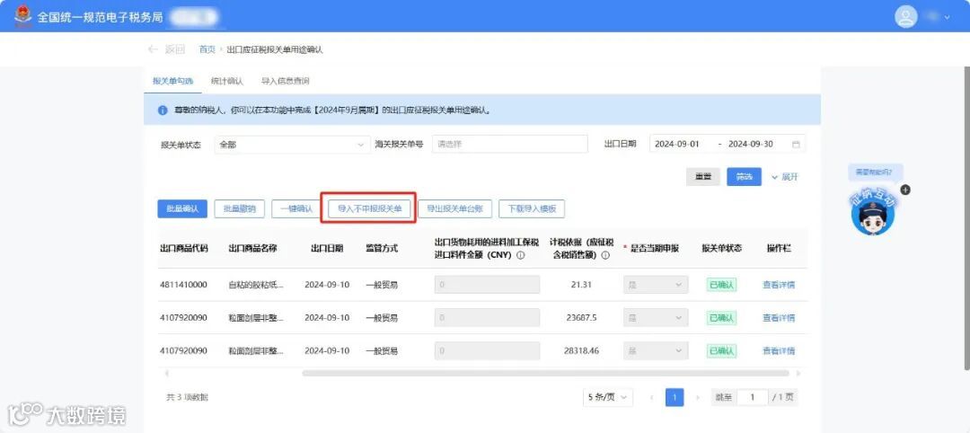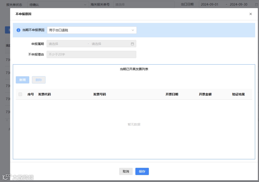 3月增值税申报前新增了《出口应征税台账新增报关单》确认功能。