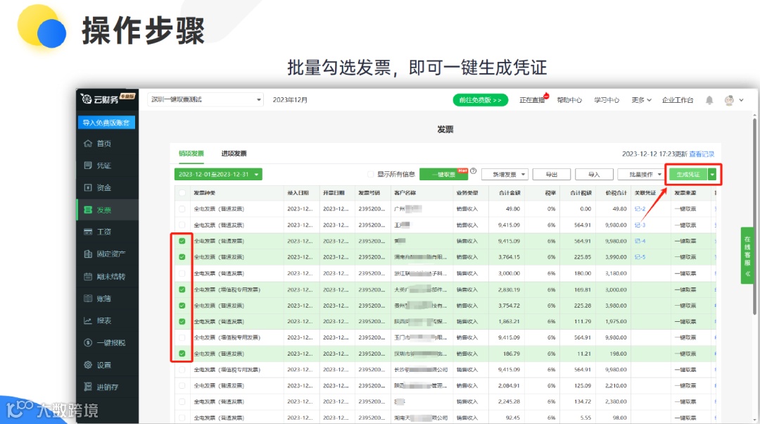智能关联进销存:一键引入进销存单据 ,自动生成凭证并记账。