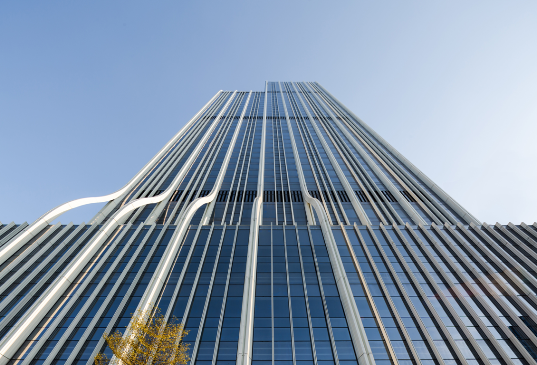 塔楼南北两翼的交错之势,让塔楼在竖向更显挺拔,外在立面更具张力。整体挺拔有力,极具标志性。