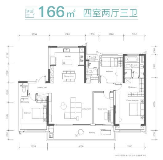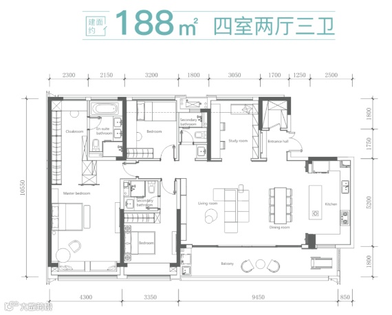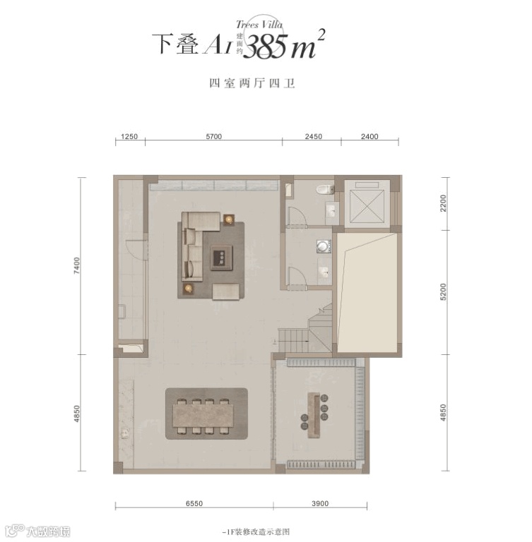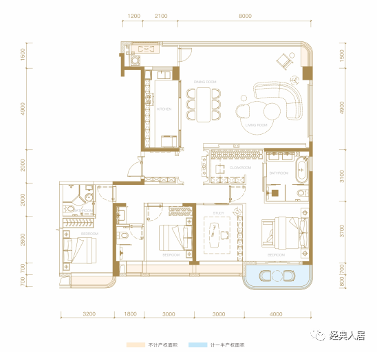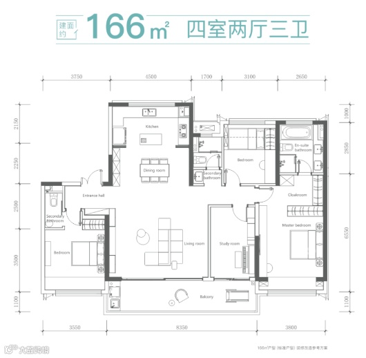 殿堂级大四房,建面约50㎡震撼公厅,建面约10米大面宽。