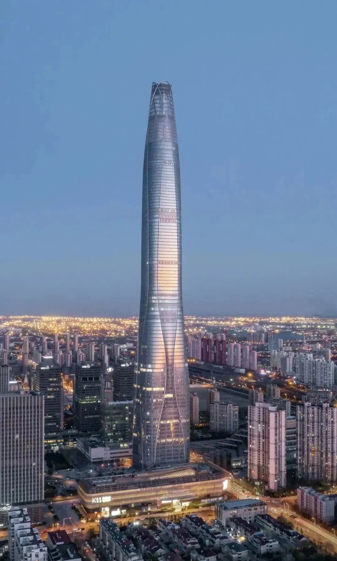 ▼天津周大福金融中心是一栋530米高的超高层综合体,是由办公、酒店、公寓和商业组成,总高度530米,一共是97层,堪称全国施工难度较大的超高层建筑之一。