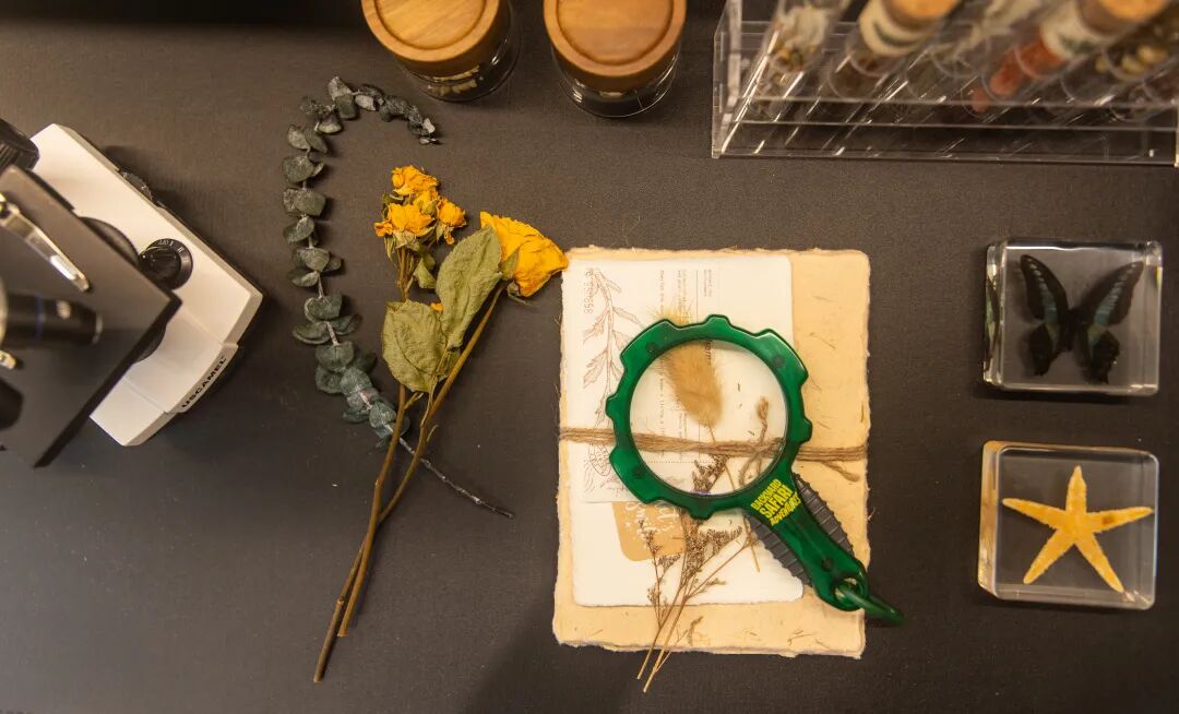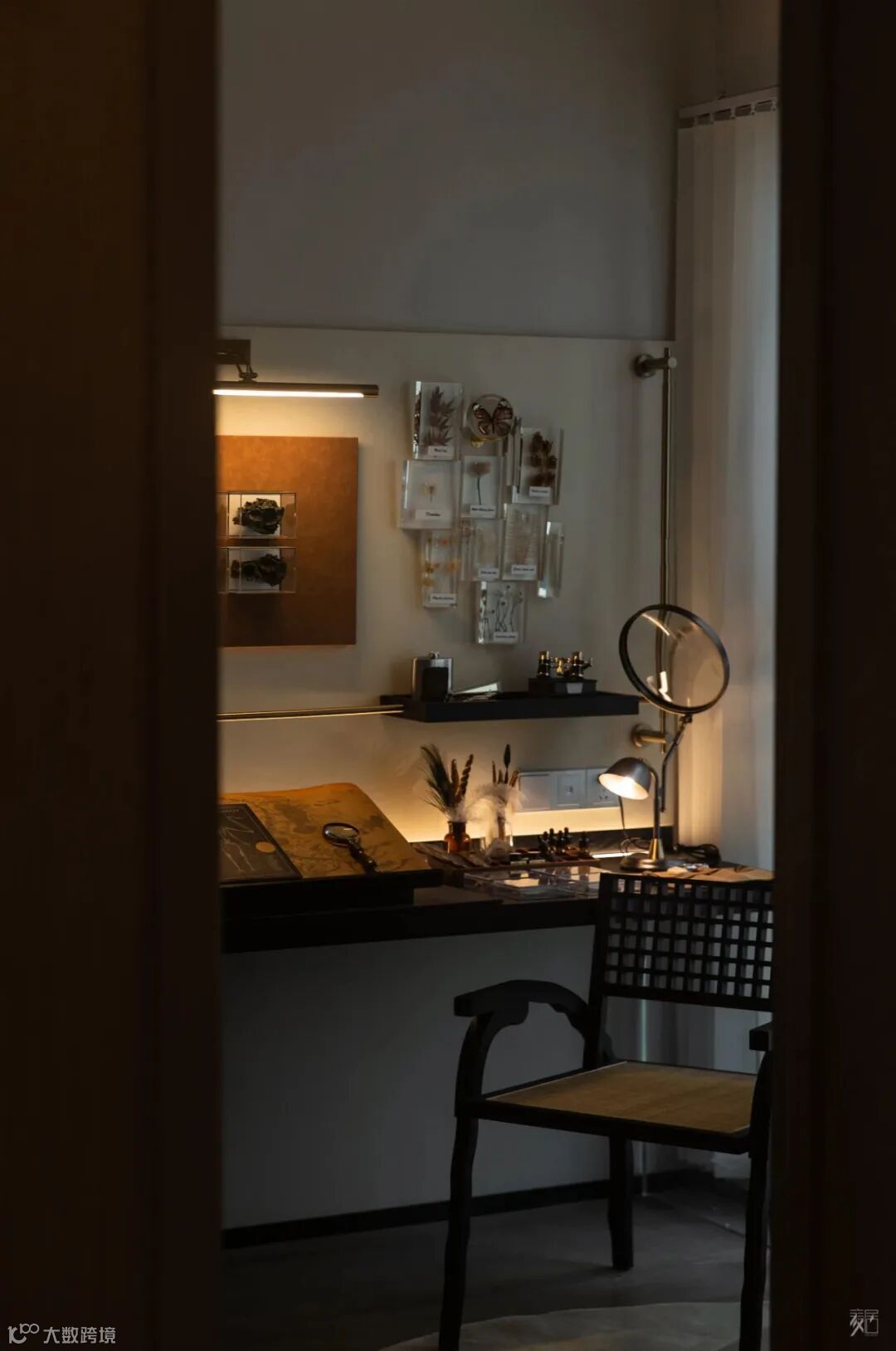 文学的方式思索生命本真,满墙的植物、矿石标本,满桌的古生物书籍,厚厚的研究笔记,塑造一个充满求知和探索的自然空间。