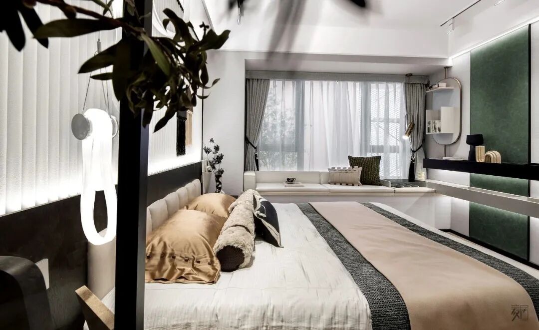 卧室整体设计以纯粹为魂、自由为本、自然为质。返璞的设计格调,营造隐心于野的氛围,空间淡泊而宁静,让人有种居于山野的自然与安逸。