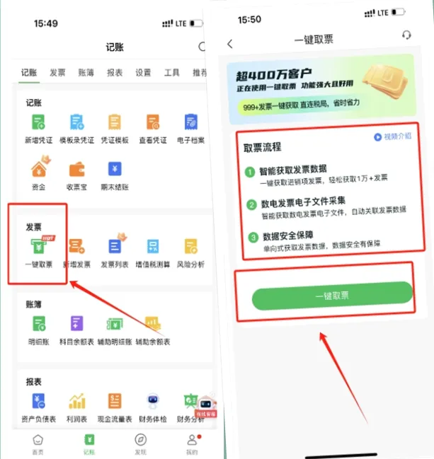 做完账后,只需点击 “一键报税”,系统自动提取财务数据,生成增值税、所得税等申报表,30 秒内完成全税种申报。