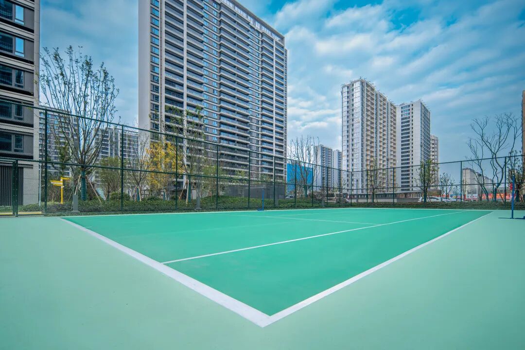 社区内部以社区共享环为基础,打造三级系统,以绿廊、口袋公园构成共享环景观带,链接起全龄游乐场、网球场、树阵广场、水景草坪、邻里巷道等节点配套。