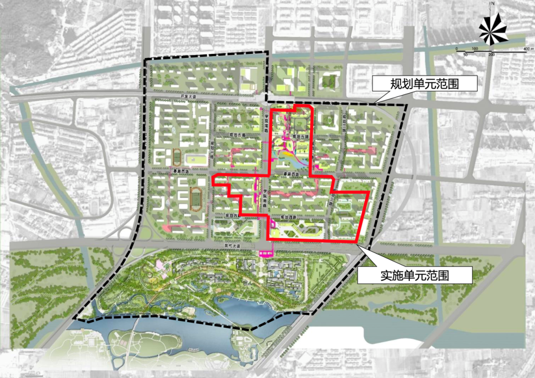 本次交付为区域内东侧的两片地块,在方案设计中,除了需要考虑地块作为独立居住小区的完整性,也需要考虑在整体“超级社区”的构成中,如何与社区核心形成有机的链接,形成和谐统一的城市肌理。