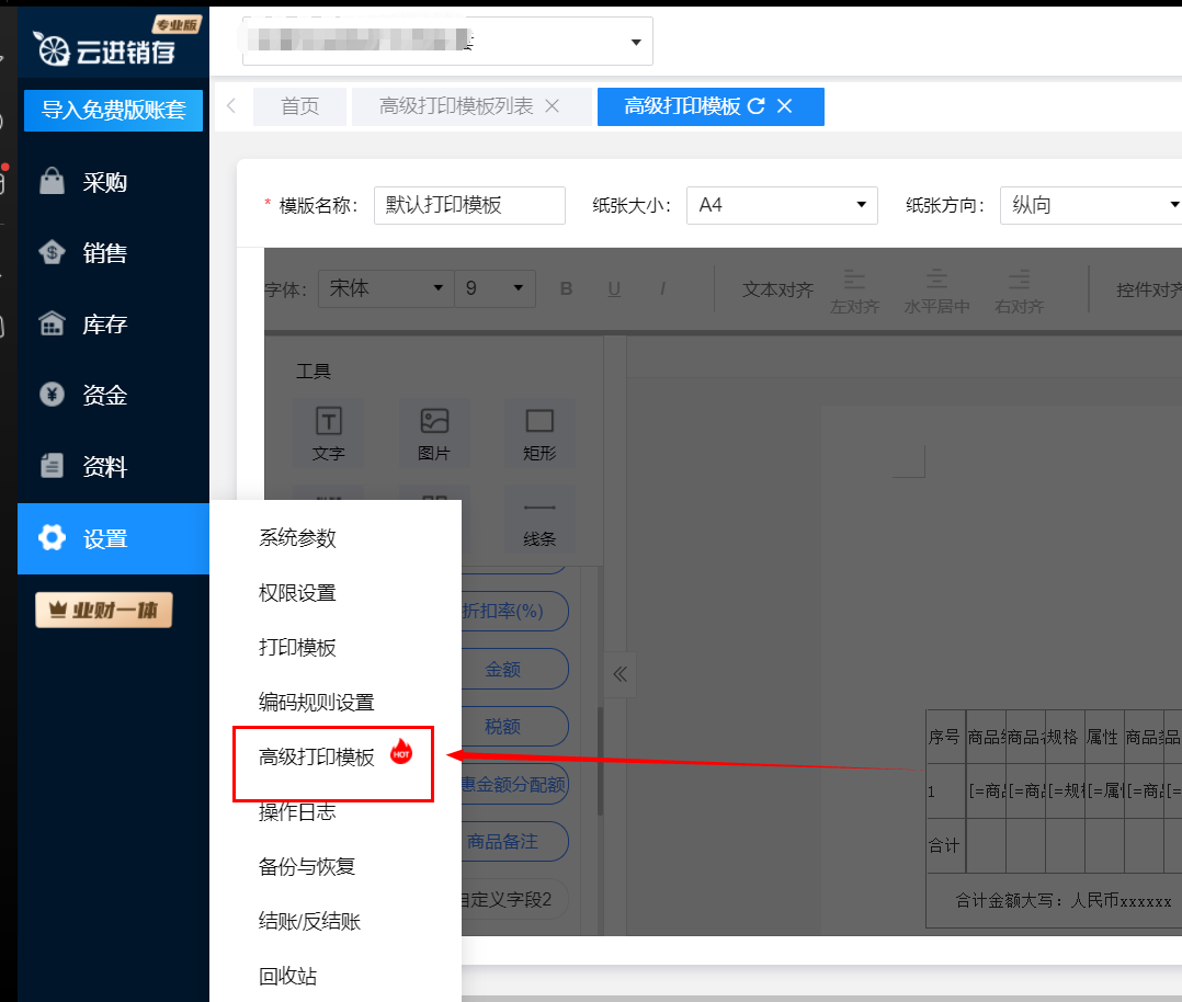 ①在设置-系统参数-功能参数界面,开启高级打印功能