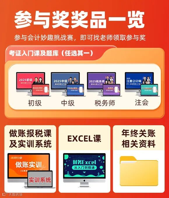 2025会计妙趣挑战赛欢迎广大会计参与,测试题共10题,每题10分,总分100分。参与即有礼,80分以上的还可赢取价值数千元的财会大课/蛇年玩偶等豪礼。