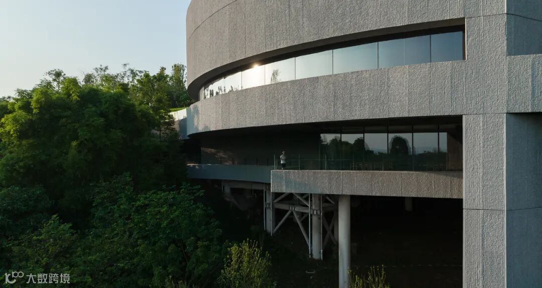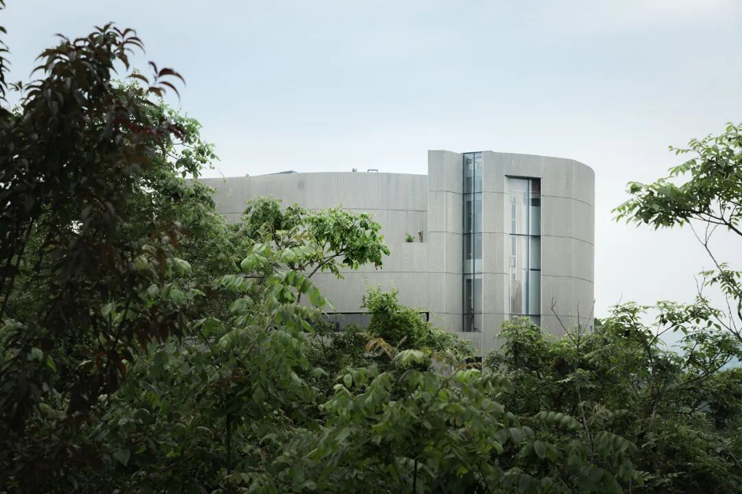 建筑如同一个隐喻两江的格式塔,轻轻地立于山峰一侧,以吊脚楼的方式介入场地。依附着崖壁,办公室、会议室和咖啡厅被安排在了圆厅之下,享有一览无余的临湖景观。为避免这些空间和主展厅之间过于直接的连接,流线设计鼓励人们走到风景中去,再经由风景进入下一个主题的室内空间。建筑内部垂直的筒体,则为快捷通达和服务动线提供支撑。