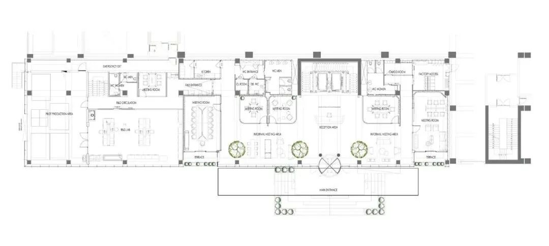 Mimaristudio还设计了外墙。考虑到最近大流行病的影响,允许用户进入露天的露台楼层是结构中值得注意的细节。这些生活空间被规划在建筑的不同楼层,既可用于工作,也可用于社交,内部和外部空间之间建立了半透明的联系。这个界面也使空间的使用者能够通过其不同大小的开口与外部进行视觉接触。在外墙界面上创建的自然景观区,允许随着时间的推移在外墙上有控制地生长绿色植物。