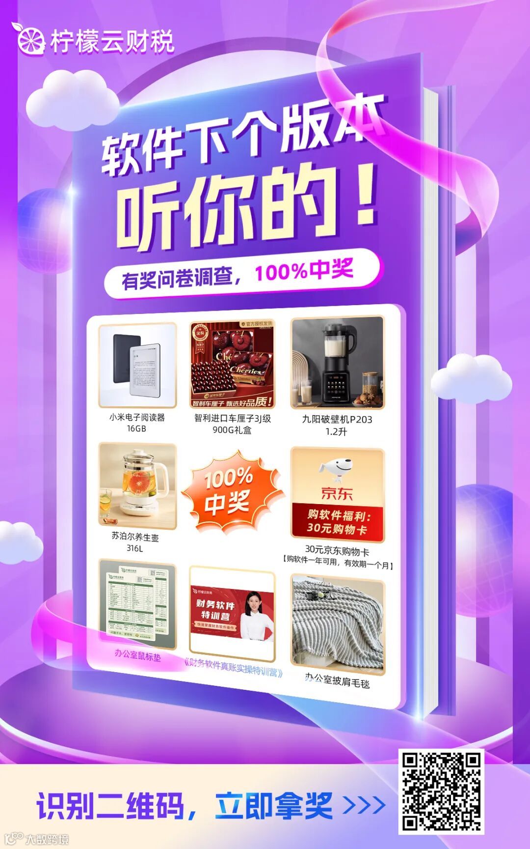 为了感谢您的信任与支持,柠檬云特推出有奖问卷调查活动,我们承诺,您的每一个回答都将被认真对待,我们会用心不断改进产品,为您提供更好的服务。