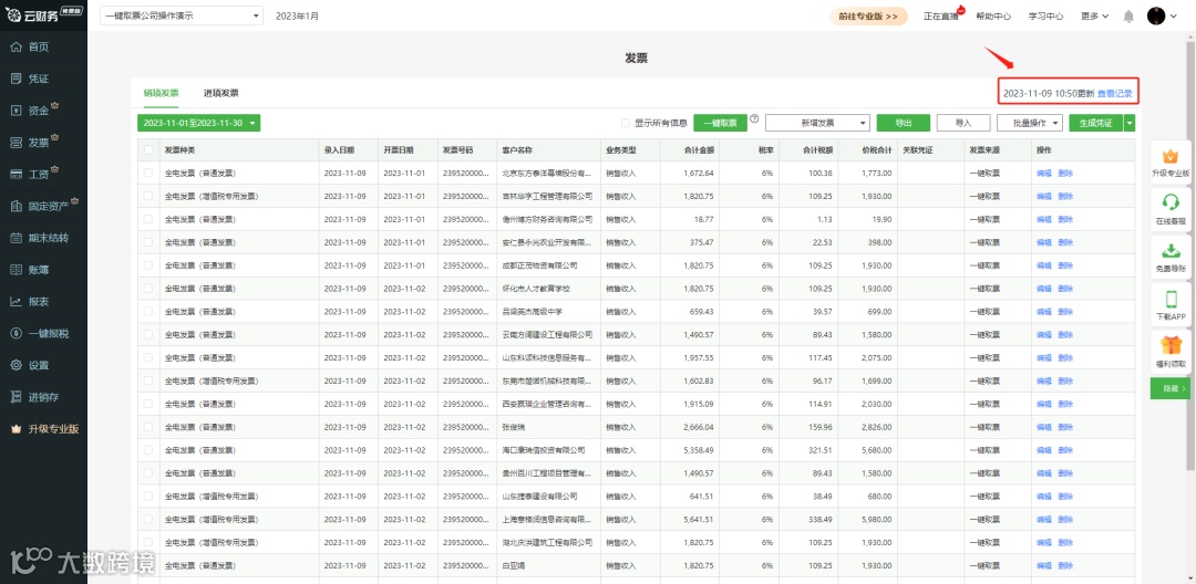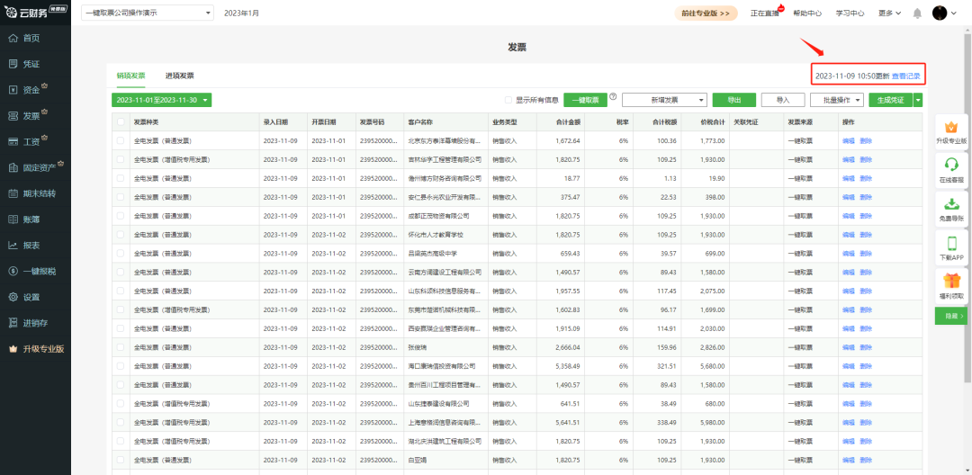 ④自动获取进销项发票数据,通过发票列表可查询对应数据