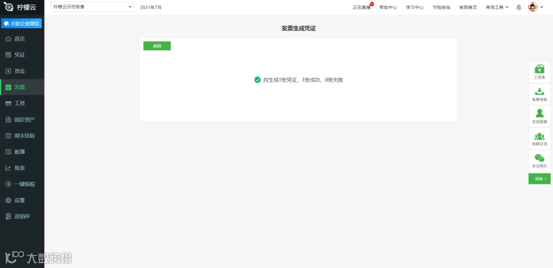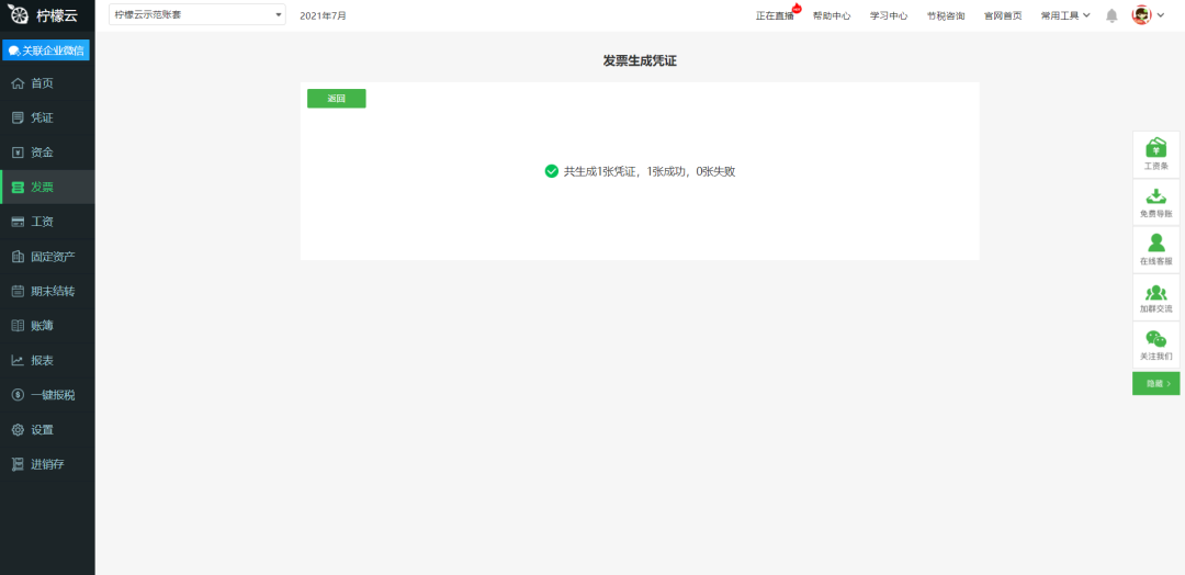 b. 凭证一键生成:能够自动识别相应的记账凭证并一键生成,让财务工作变得更加高效,极大地提高了工作效率。