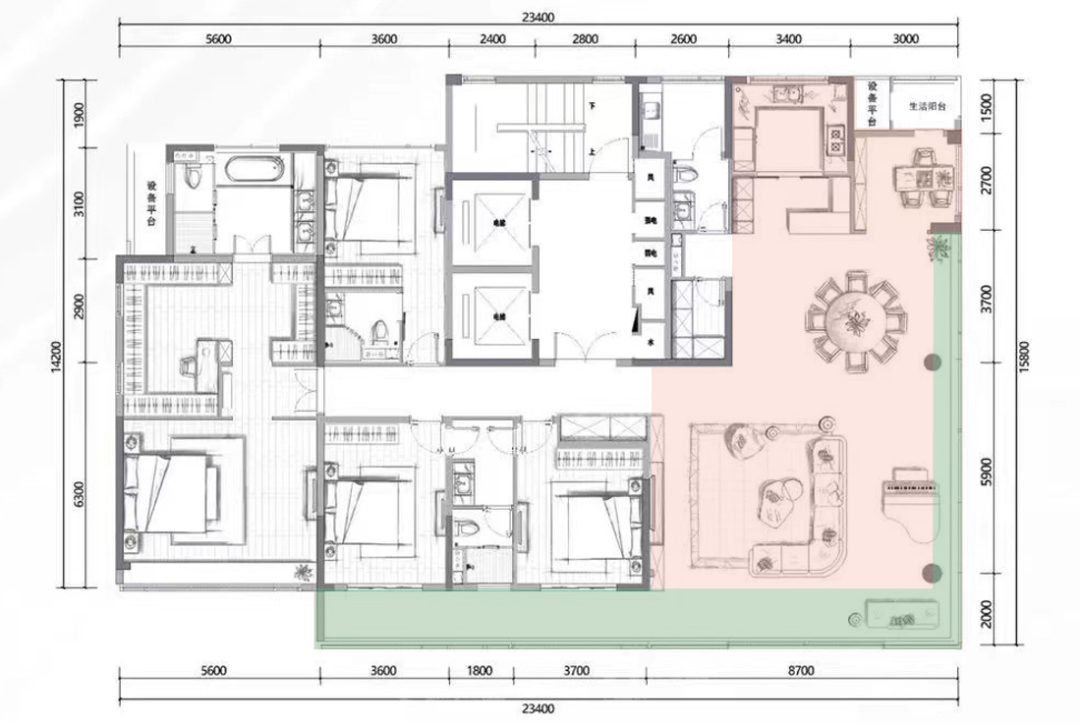 一层一户:“大平层”(230-760㎡多个面积段)