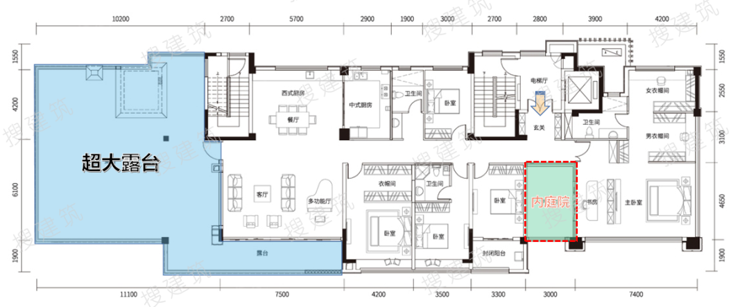 引入内庭院、超大露台