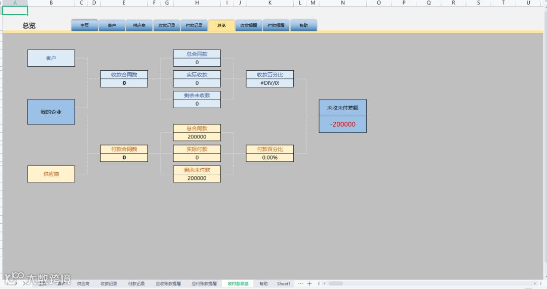 这个系统,财务人员每天都要打开无数次,要看看合同到期没?产生违约金没?到收款期了没?为什么收款付款没做到位,有了这个表格,能迅速找到原因,并且可以重点关注异常的供应商或者客户。