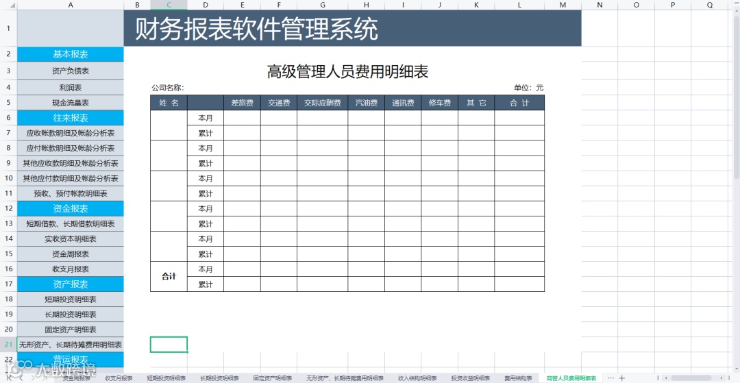 最后这个系统,也是相当优秀的,给老板汇报工作,给银行、审计展示都要用到这个表格,甚至是在公司申请一些资质的时候都要用到这套系统。