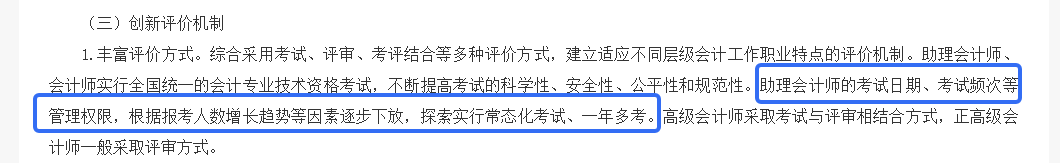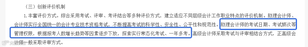 助理会计师的考试日期、考试频次等管理权限,根据报考人数增长趋势等因素逐步下放,探索实行常态化考试、一年多考!