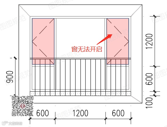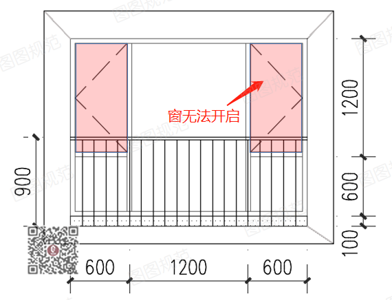 改进做法:900mm高栏杆下,将开启扇抬高▼
