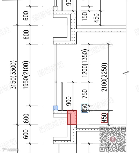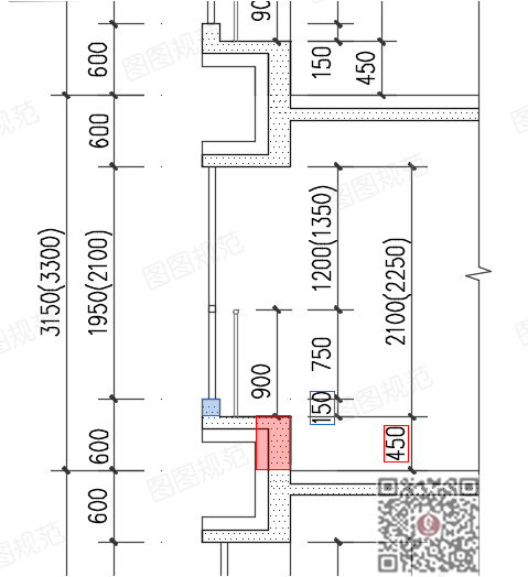 3150~3300mm层高时,窗台面高450mm,外墙翻沿150mm。▼▼