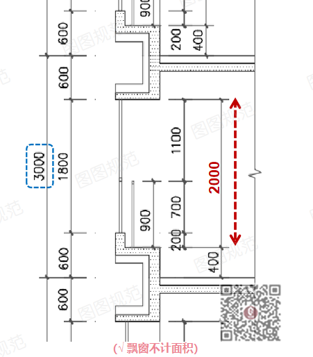 3000mm层高时,窗台高400mm,飘窗结构净高为2000mm,飘窗不计面积。▼▼