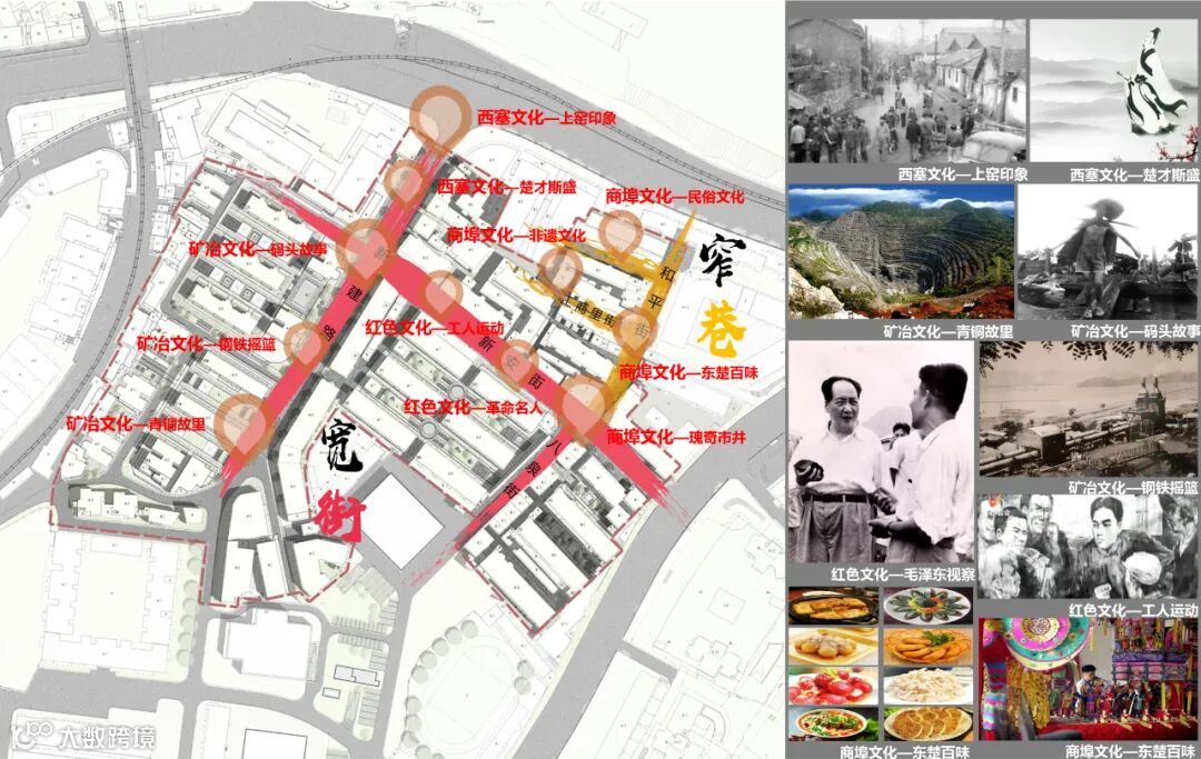 聚焦上窑历史片区,它承载了文化传承的历史使命。黄石作为城市更新全国试点城市,我们提出了历史文化街区活化利用总体方针——激活历史之源,复兴百年老街胜景。