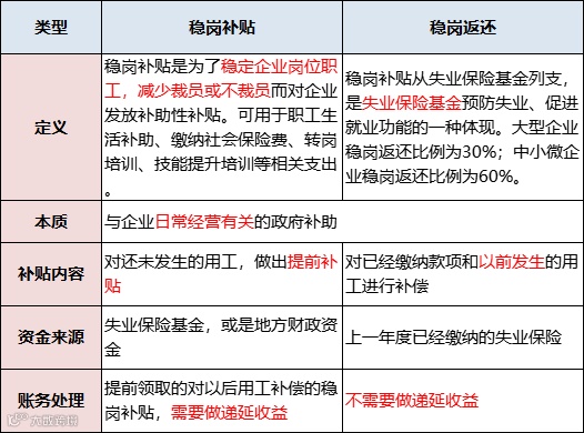 “净额法”下,需要对稳岗返还与补贴的成本进行追溯,补助资金用于冲减对应的成本。