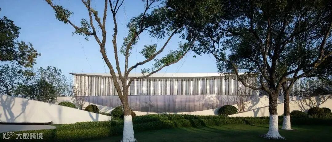 拥有天然香樟林背景界面,充分发挥自然基调,通过入口纯净的白墙、水面和草坪,形成入口清新而内敛以自然艺术为基调的超级展示界面。